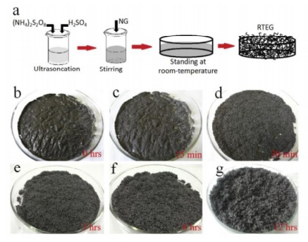 鉴于传统制备方法的缺陷,LIU等研发了一种室温下一步大规模生产EG的方法。石墨的插层和膨胀仅在环境条件下实现一步,膨胀体积达到225倍,不需要任何加热,能耗小,工艺简单,可减少约85%的浓H2SO4用量,大大减少废水排放量。