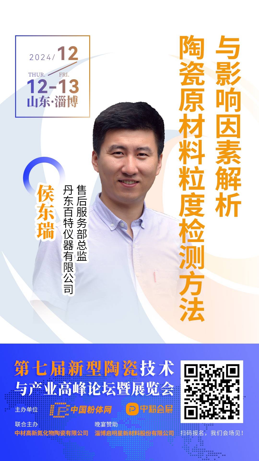 2024年12月12日-13日,中国粉体网将在山东淄博举办“2024第七届新型陶瓷技术与产业高峰论坛”,丹东百特仪器有限公司售后服务部总监侯东瑞将带来题为《陶瓷原材料粒度检测方法与影响因素解析》的报告,将会为大家分享陶瓷原材料粒度的检测方法,以及分析在粉体粒度分析检测中,影响检测结果的因素。