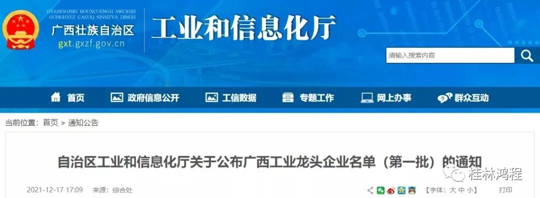 祝贺桂林鸿程入选广西工业龙头企业
