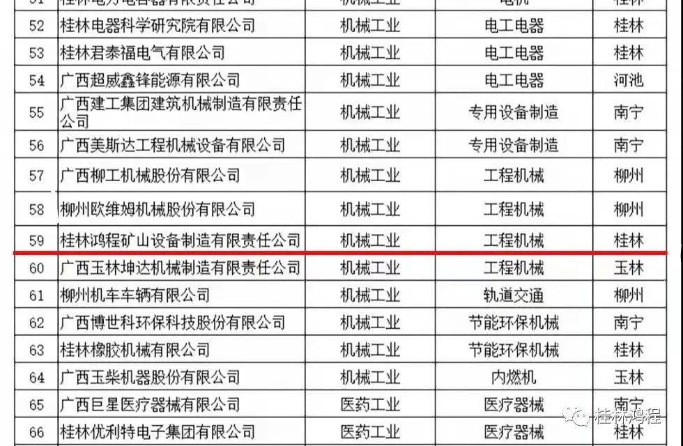 近日,自治区工业和信息化厅公布第一批广西工业龙头企业名单,共105家企业入选。其中,鸿程成为桂林21家企业唯一一家工程机械行业上榜企业。