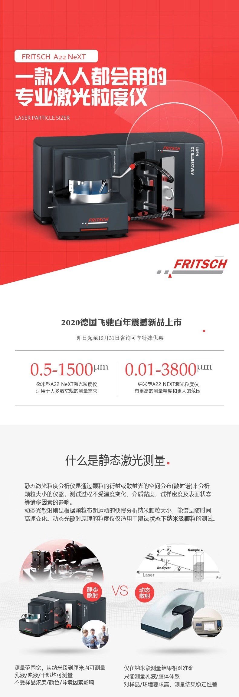 德国飞驰FRITSCH A22 NeXT激光粒度仪震撼新品上市