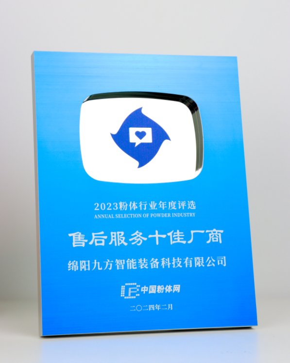绵阳九方荣获2023年度粉体行业“售后服务十佳厂商”