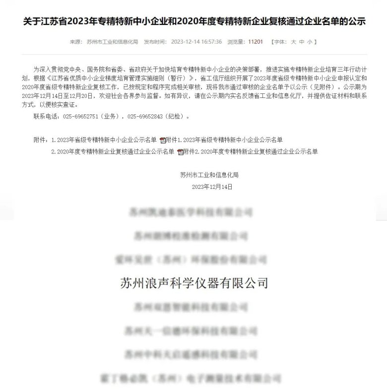 喜讯!浪声科学获评“江苏省专精特新中小企业”